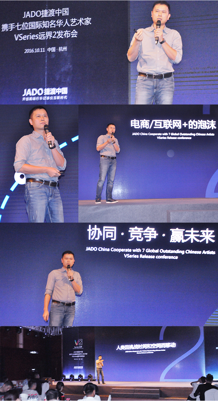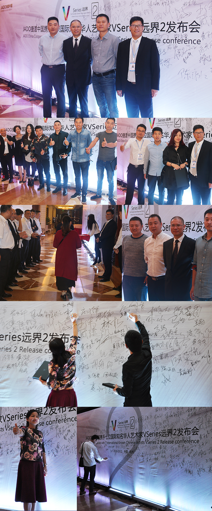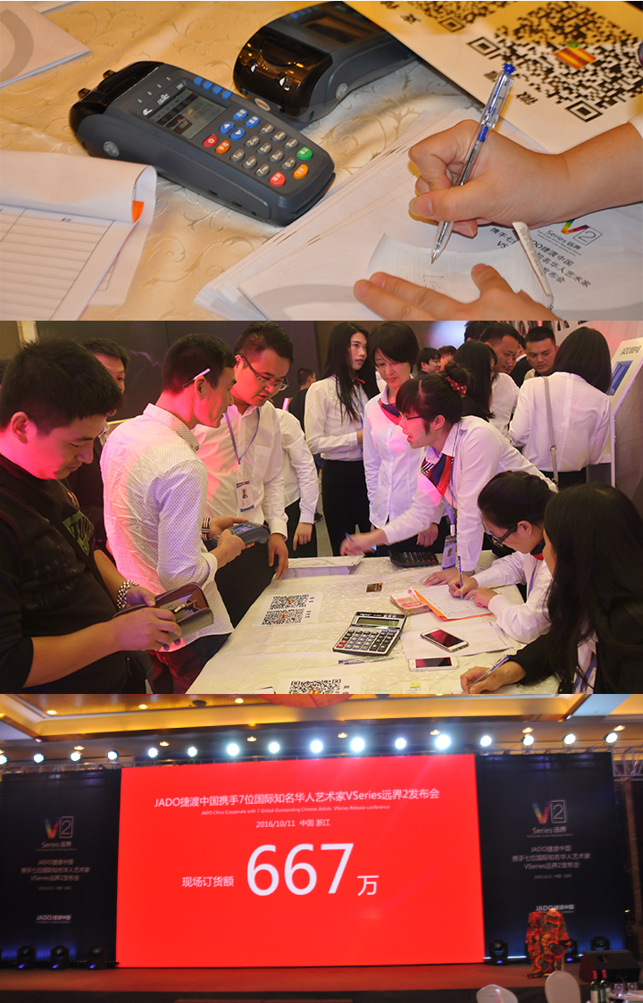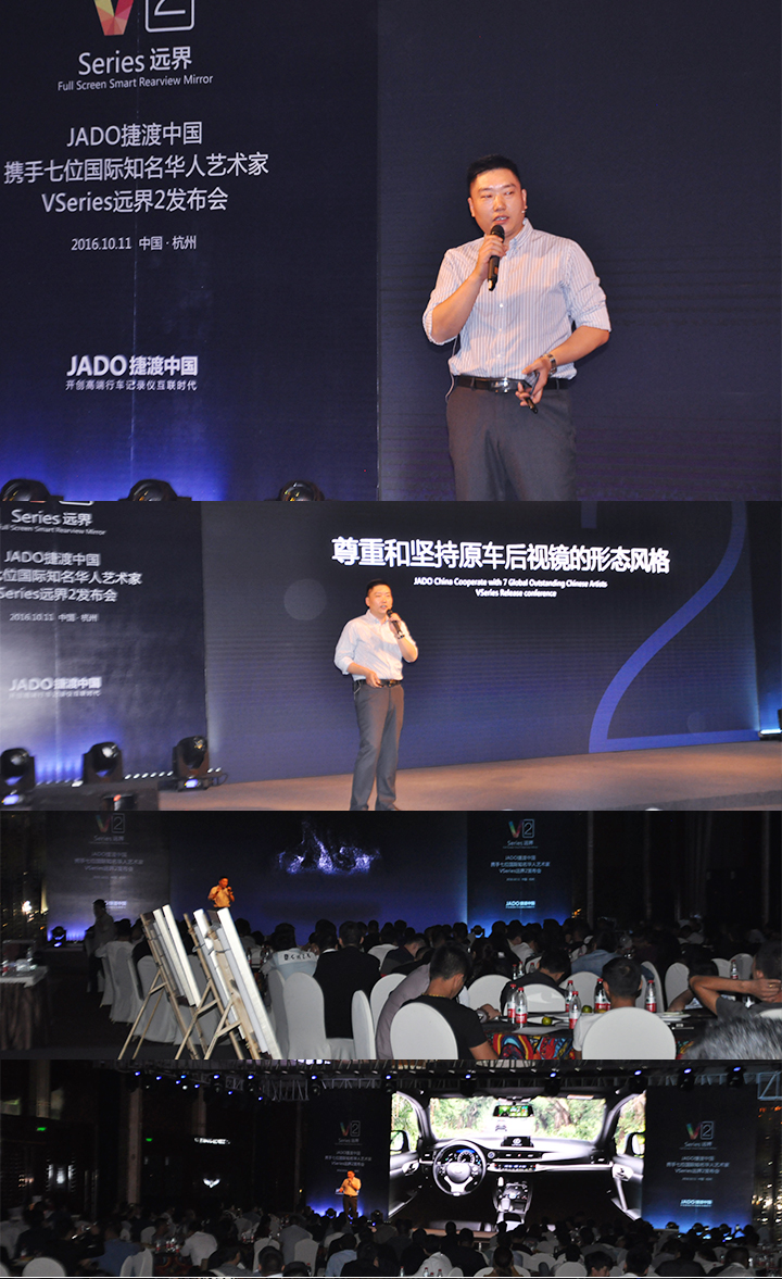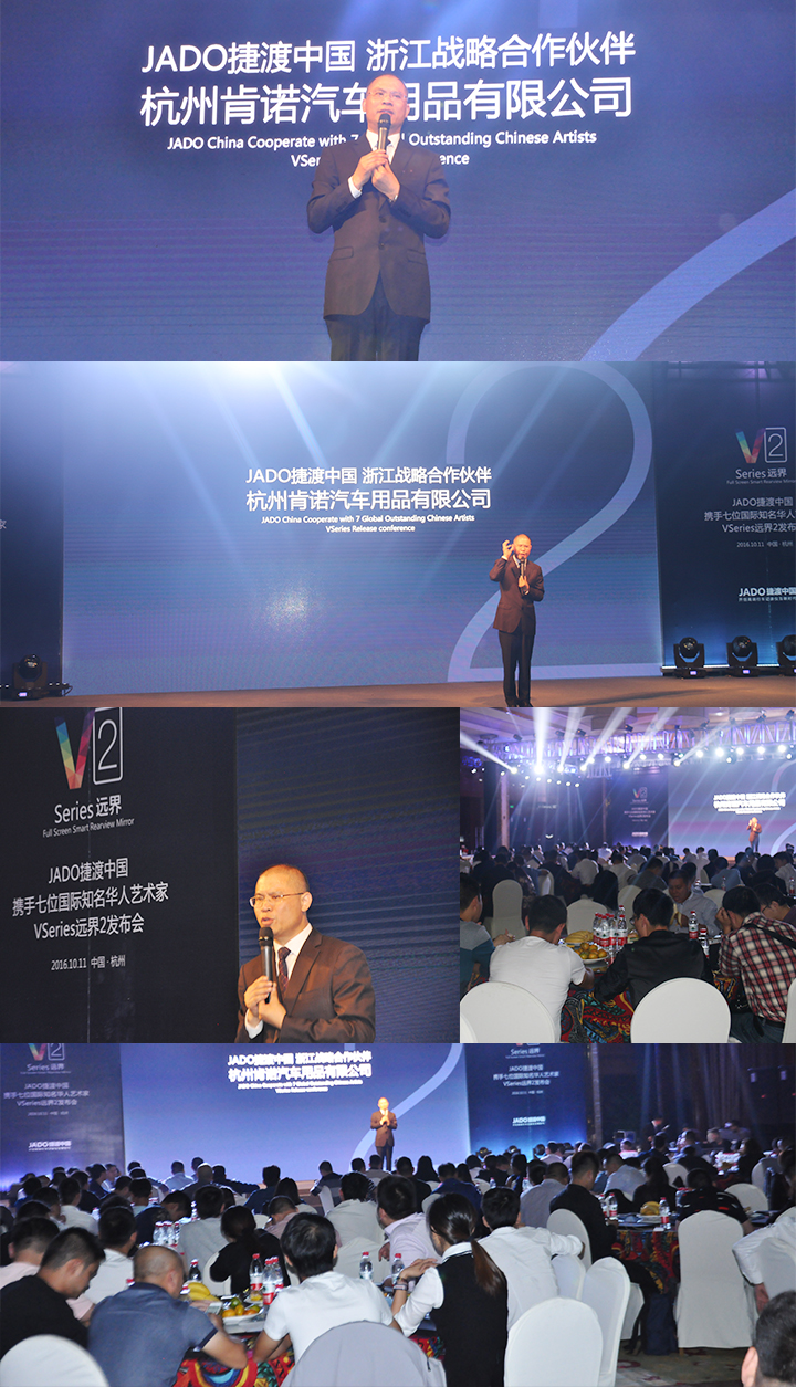 2016年10月11日,以 “再見,過去;你好,遠界 Bye yesterday, Hello VSeries” 為主題的“JADO捷渡中國攜手七位國際知名華人藝術家VSeries遠界2(中國• 杭州)發布會”在杭州海外海國際酒店完美落幕。本次活動由JADO捷渡中國浙江省戰略伙伴杭州肯諾汽車用品有限公司主辦。