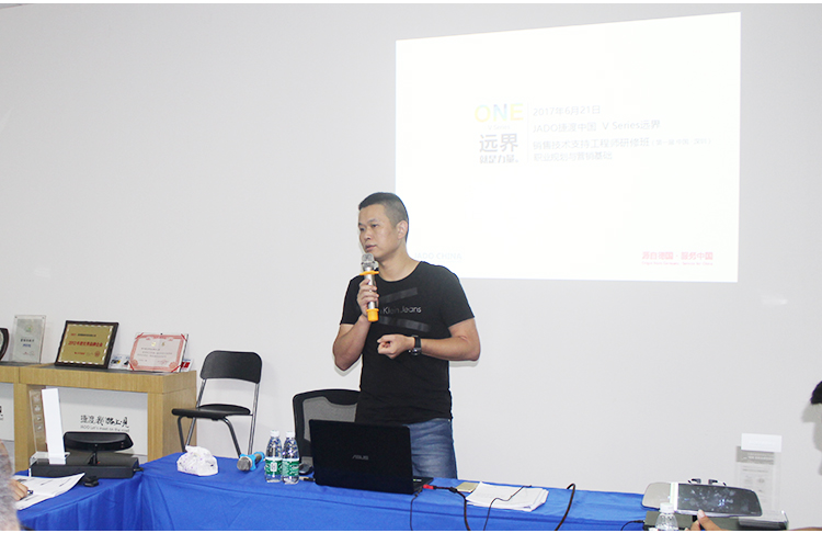 6月19日,以“產品技術支持”為課題的JADO捷渡中國第一屆銷售工程師技術支持研修班,在JADO捷渡中國深圳生產基地舉辦。JADO捷渡中國研究院負責人和各戰區VSeries遠界技術支持工程師,展開為期四天的培訓,共同進行關于VSeries遠界產品培訓以及探討職業規劃,在思想上進行一次 “充電”。