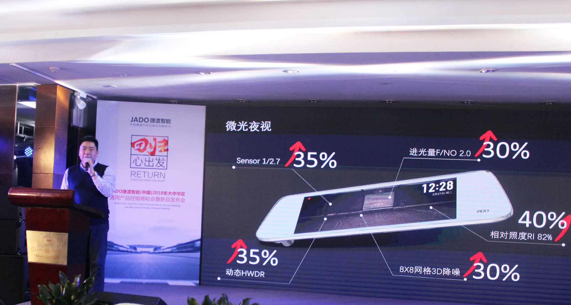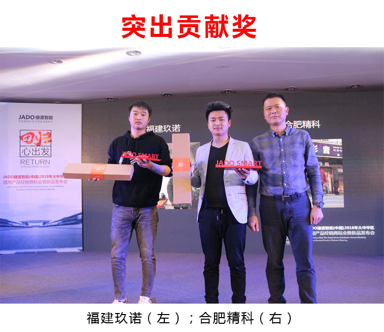2018年2月28日,以“回歸·心出發”為主題的JADO捷渡智能(中國)大中華區通用產品經銷商粘會暨新品發布會在深圳觀瀾格蘭云天國際酒店隆重舉行。