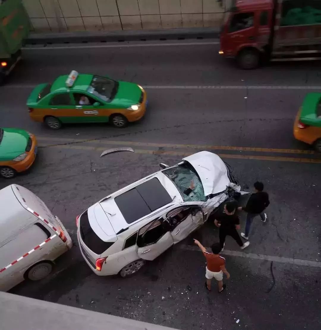 事故發生的地點在玉祥門盤道下穿隧道入口處,當時是一輛白色凱迪拉克SUV轎車高速行駛與對向面包車發生碰撞。根據市民提供的行車記錄儀視頻顯示,凱迪拉克在從右側實線變道至左側超車時,因高速行駛躲避路面障礙物不及,造成車輛方向失控,越過雙黃線撞向對面駛來的一輛面包車,整起事故發生過程前后只有5秒鐘。