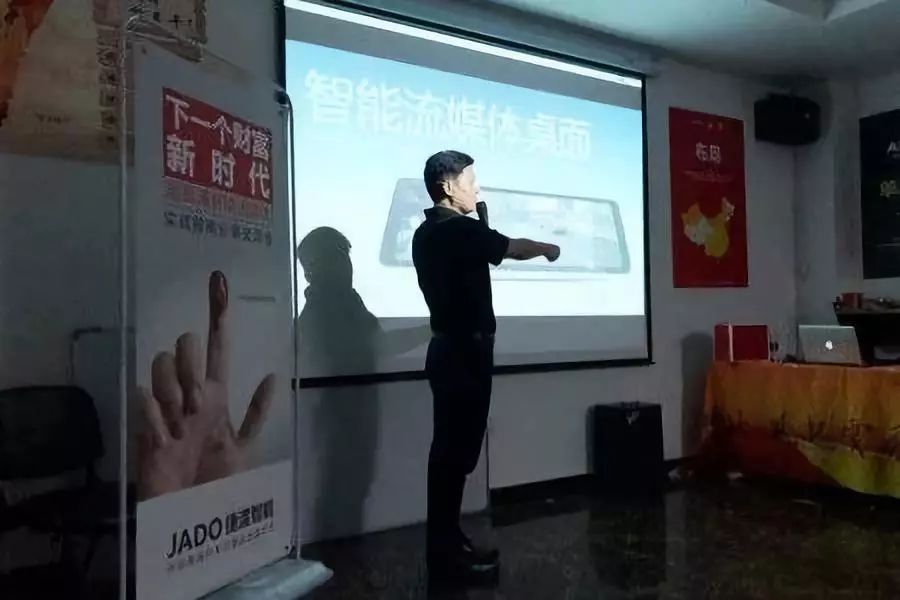 會議伊始,JADO捷渡智能(中國)的合作伙伴安徽省淮北市城市運營商陳東禹先生上臺致辭,對出席此次會議現場的嘉賓表示熱烈歡迎和最誠摯的感謝,同時對目前市場現狀以及各位終端店老板的困惑做了深入的交流。
