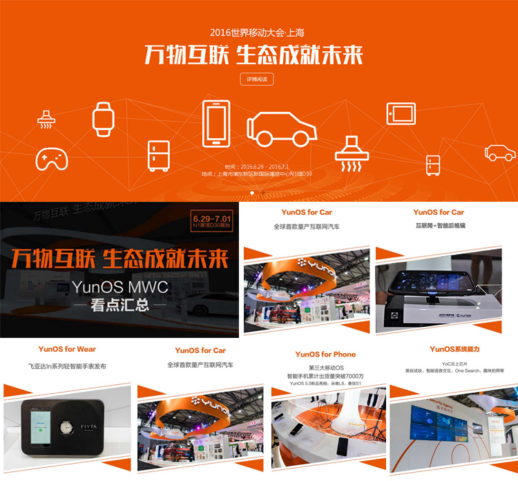 2016年6月29日-7月1日,在為期三天的展覽上,也是阿里巴巴YunOS連續第二年在MWC上亮相,通過大會向整體通信行業及產業鏈階段性展示YunOS幫助合作伙伴實現產業創新與升級的成果。JADO捷渡中國作為阿里巴巴YunOS 在行車記錄儀行業的第一家戰略合作伙伴受邀參展。